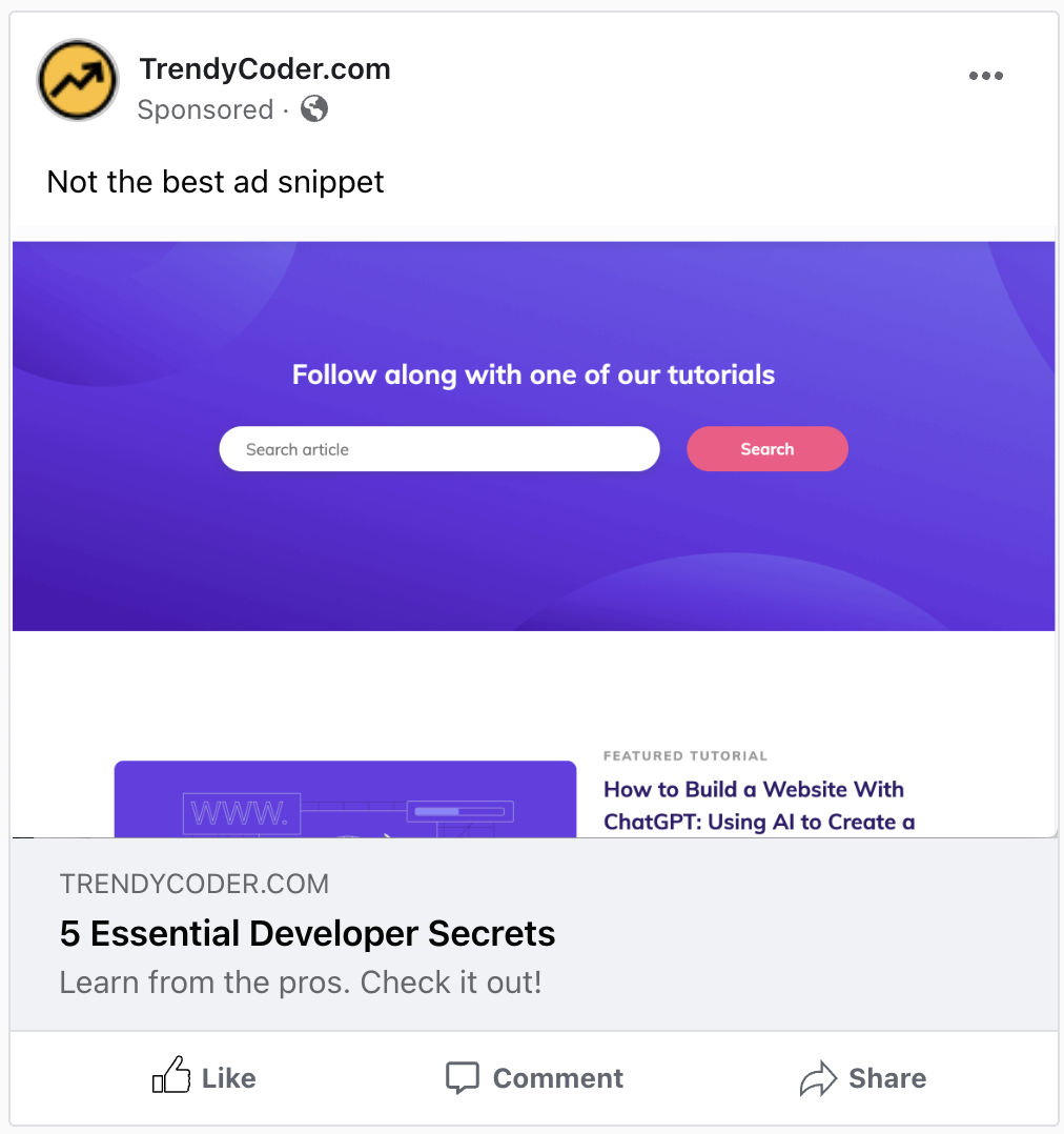 As you can see the page doesn't really stand out and look as good. Using Open Graph will ensure the page looks and displays properly on social platforms when shared or placed in Ads.