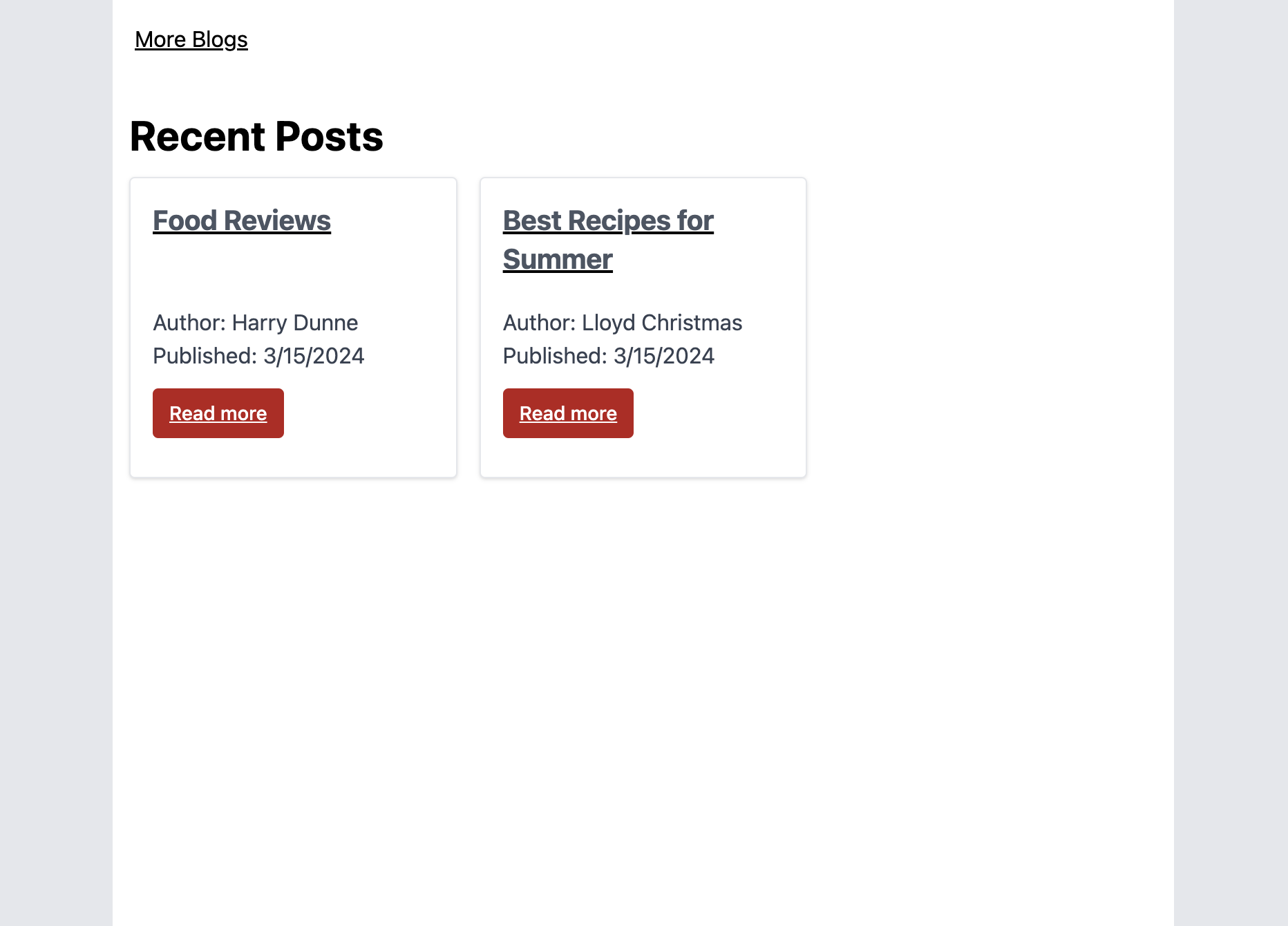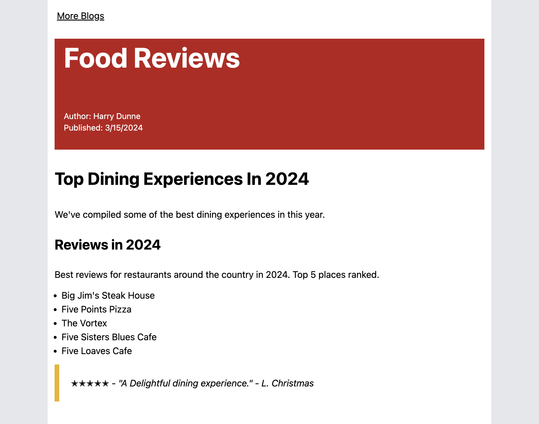 For this article I'll be creating a simple blog that talks about food related topics and will include the following pages and components: