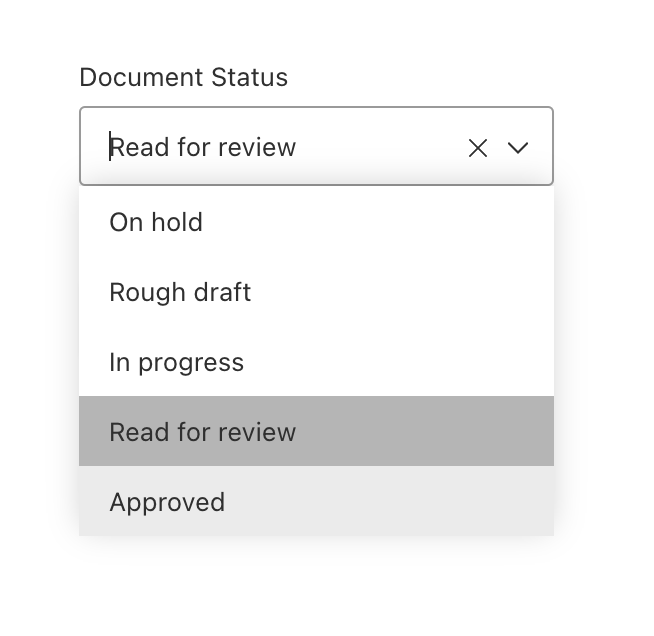 - Document status: A select menu to set a single relationship to a document progress status indicator.