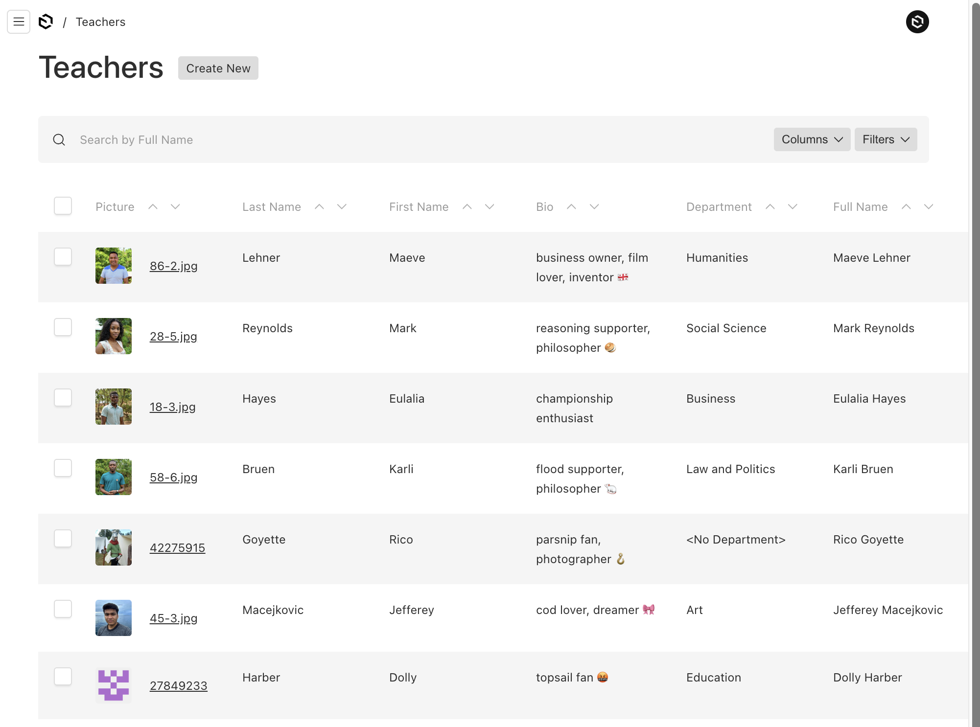 - teachers: A relationship field to assign teachers to the department.