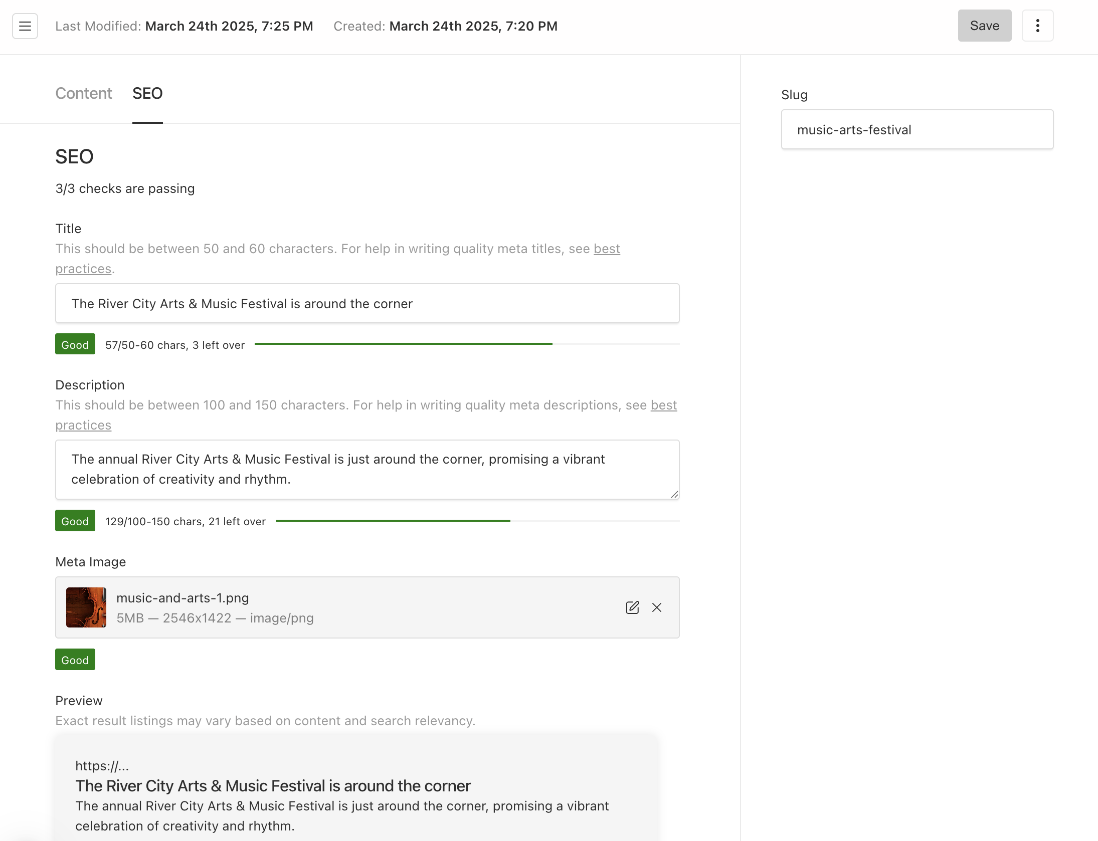 - Built-in SEO validation to make sure fields are properly formatted.