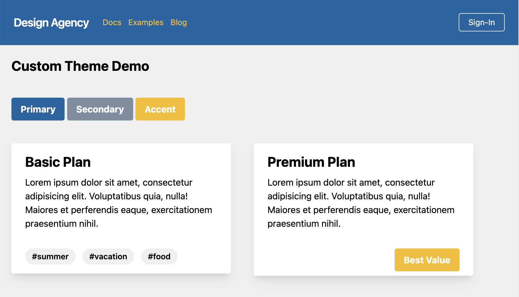 So now that a basic theme has been defined, we can actually start using it and see how it can be applied on a page.