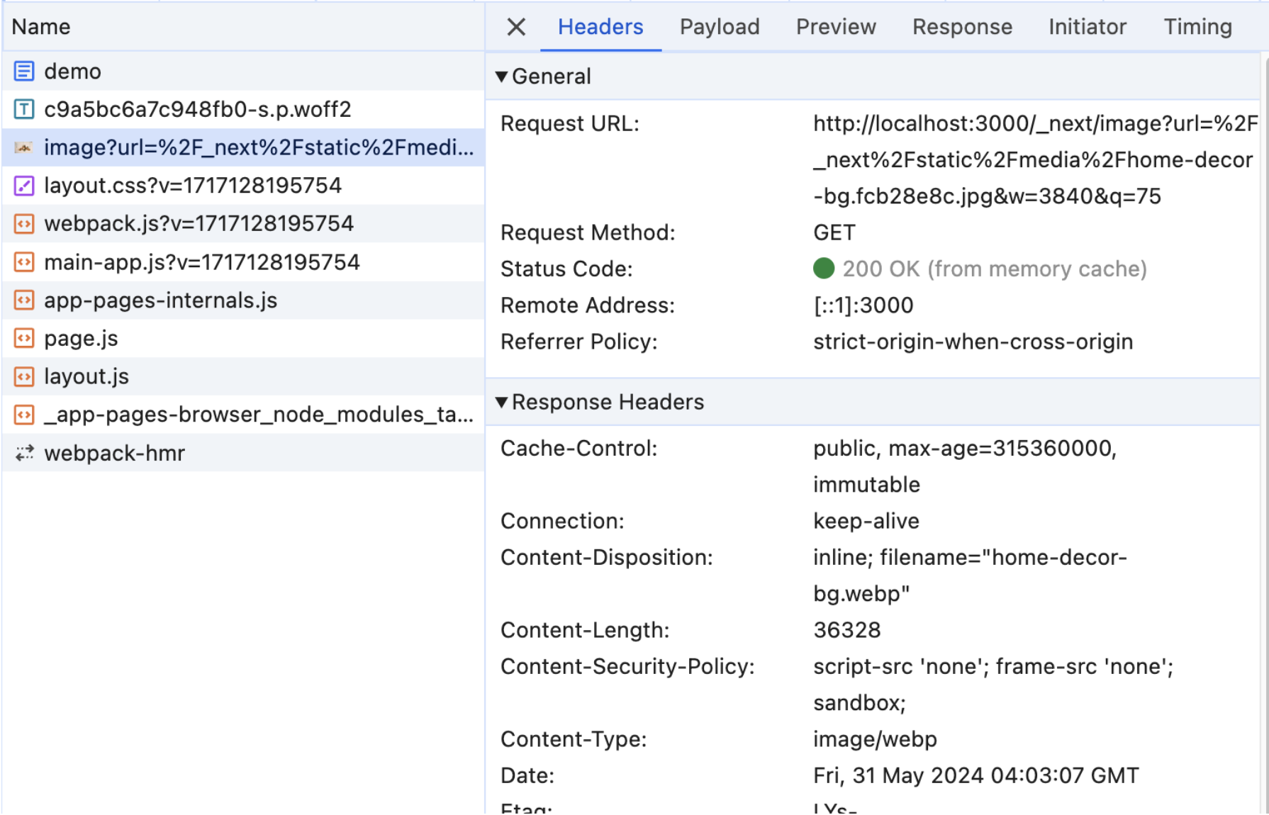 So the file size has been reduced to half of its original size and the image content type is now image/webp and fully cached.