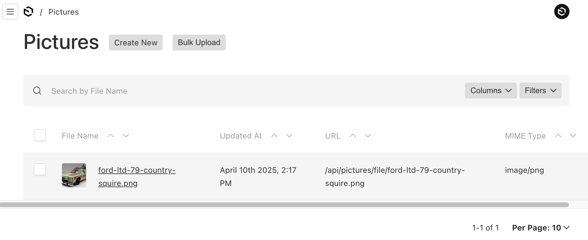 Here's the pictures Collection to manage uploads.