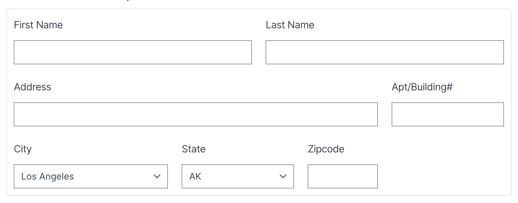 Here's a full example of an address form layout for a mobile device and a sm device size screen.